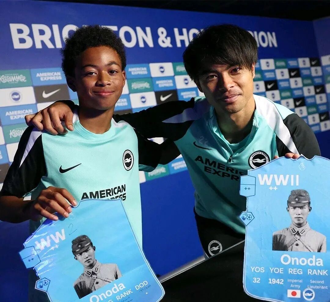 据英国广播公司(BBC)11月29日报道,英超俱乐部布莱顿为当天社交媒体上一张有争议的照片道歉。照片中,国脚美咲薰和一名年轻球员各拿着一张印有二战日本军官小野田宏头像的卡片。水木薰(Kaoru Mizuki),日本足球运动员,现效力于英格兰足球超级联赛布莱顿队。小野田弘郎是二战中最后一位正式投降的日本士兵。他于 1974 年投降,距日本战败已近 30 年。布莱顿俱乐部青年学院在社交平台上发布声明