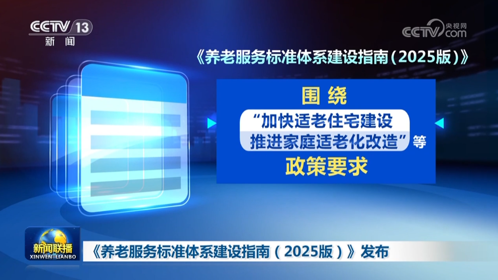 央视新闻(新闻联播):11月26日,民政部、国家市场监督管理总局联合发布《养老服务标准体系建设指南(2025年版)》(以下简称《标准指南》)。《标准指南》紧紧围绕“加快老年友好型住房建设,推进住宅老年友好型改造”等政策要求,进一步新增“老龄修缮服务”、“安全管理”等新指标”和“科技助老”。未来,有关部门将加快制定养老服务领域的基础通用标准、行业标准和更新升级标准,特别是在家庭社区养老、质量安全、智慧养老、住宅养老等领域,重点制定与人民群众生活密切相关的具体标准。