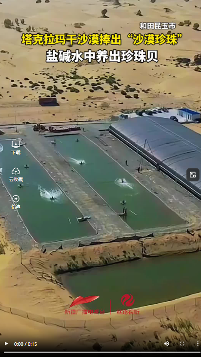 新疆广播电视台/丝路视听新闻网(记者:张淼)珍珠,这颗诞生于深蓝色大海的柔和光芒,在滚滚黄沙中奇迹般地绽放出灿烂的光芒!近日,塔基马坎沙漠边缘的昆玉市成功进行了7万只珍珠贝养殖试验。为什么这片贫瘠的土地会产出象征水之精华的珍珠呢?答案就在于一个名为“盐碱水生态改善与水产养殖”的科技项目。 “贝类”立体养殖就地在盐碱水湖上进行。来自世界各地的优质淡水蛤在意想不到的“海洋”中安然无恙,让砂磨变炙手可热的宝藏。